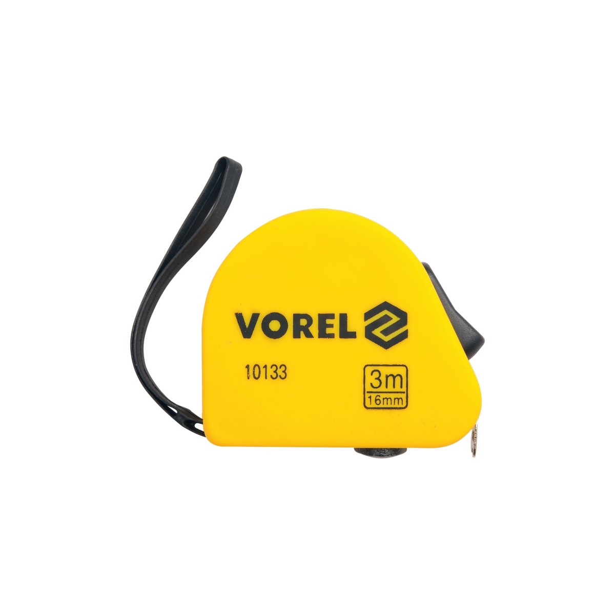 Ruleta metalica de 3 m lungime și 16 mm lățime prevazuta cu carlig glisant. Carcasa este realizată din plastic acoperit cu un înveliș din cauciuc moale și este prevazuta cu buton de blocare si clips pentru fixare.